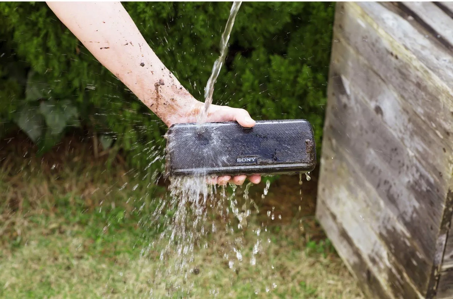 SRS-XB31 защищена от коррозии, так что с ней ничего не случится, даже если уронить ее в морскую воду.