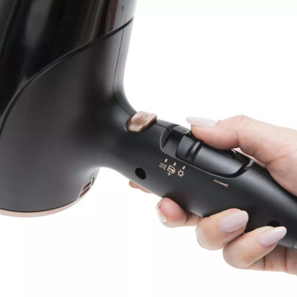 Сильный воздушный поток сушит волосы быстрее, что позволяет значительно сэкономить время. При этом, пользователю доступны три температурных режима для бережной сушки волос любого типа. Режим термозащиты эффективно защищает волосы от перенагревания. Для защиты волос и кожи головы создается мощный воздушный поток бережной температуры. Благодаря 3 настройкам температуры, 2 скоростям воздуха и функции холодного воздуха Вы получите превосходную гладкость.