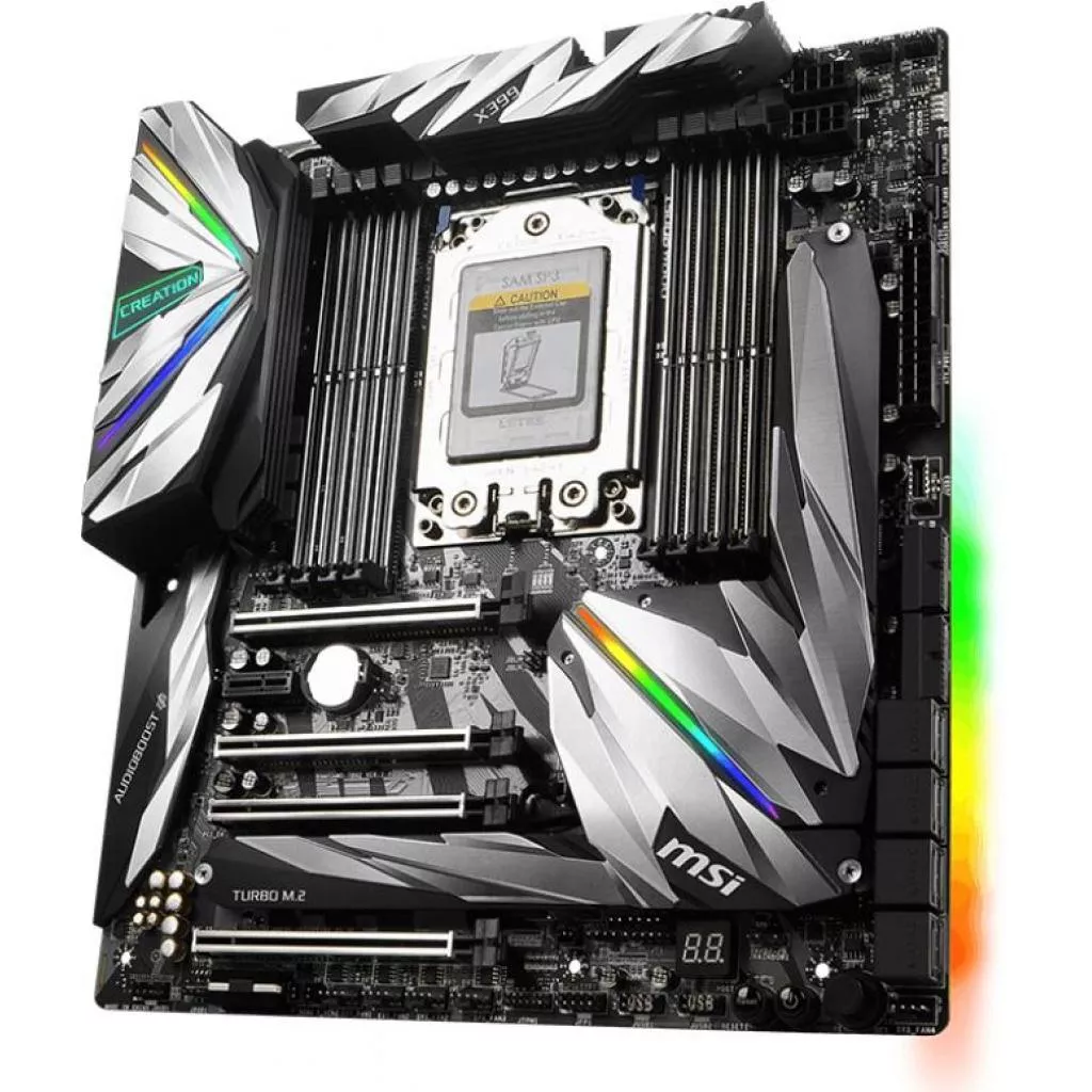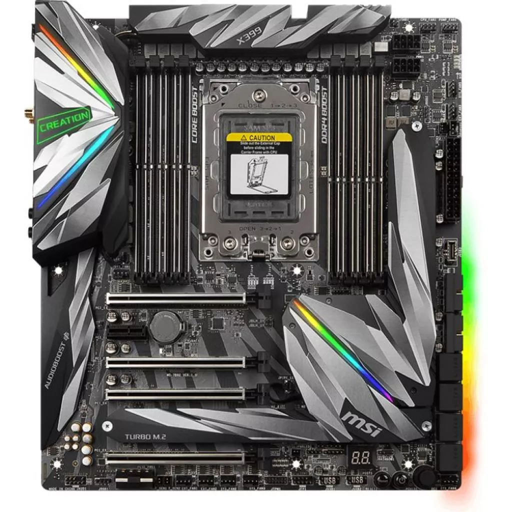 Специально для очень обеспеченных пользователей компания MSI создала топовую материнскую плату MEG X399 Creation формата E-ATX. Она базируется на чипсете AMD X399 и поддерживает процессоры линейки AMD Ryzen Threadripper первого и второго поколения.