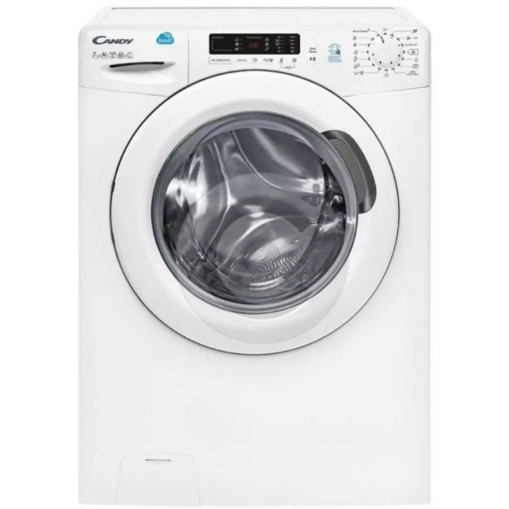 Стиральная машинка с фронтальной загрузкой CANDY CS4 1372D3/2-S. На передней части устройства размещено дисплей, на котором отображается вся необходимая информация о запущенных процессах и программах. Рядом имеются кнопки и регулятор, за счет которого вы можете сделать все настройки. Также имеется привычный лоток для порошка и кондиционера. Дверца машинки довольно большая, и через нее вы можете наблюдать за процессом выполнения стирки. Дверь закрывается плотно и открывается только за счет ручки.