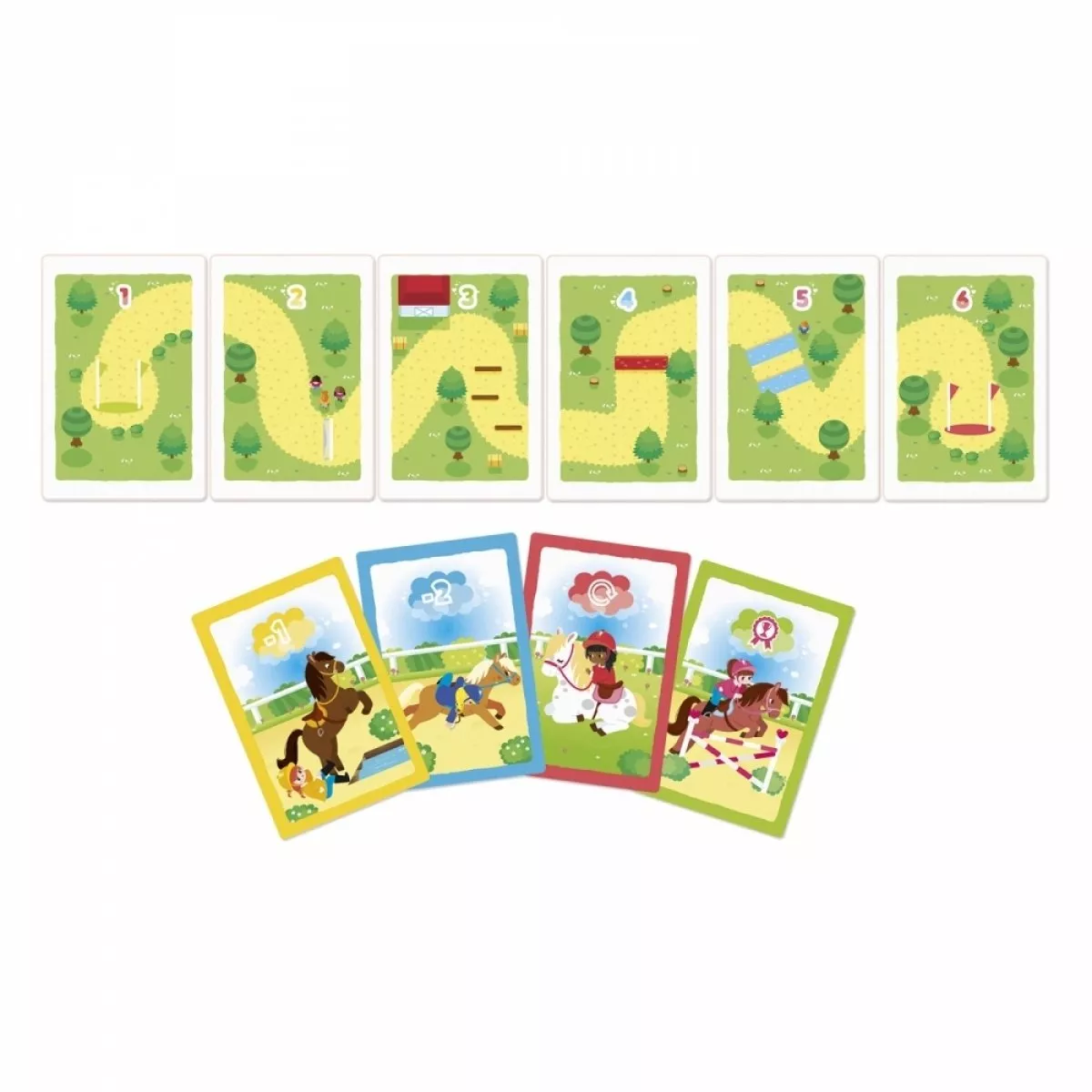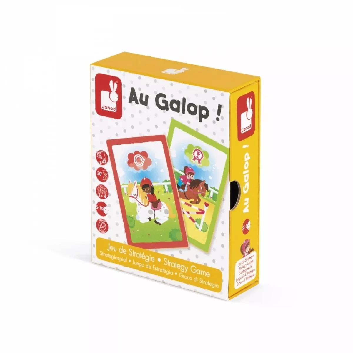 Увлекательная карточная настольная игра для 2-4 игроков от французского бренда Janod. Пришло время узнать, кто самый ловкий наездник! На пути к финишу будут встречаться преграды от соперников, поэтому необходимо быть хитрее их. В наборе 42 карточки из плотного картона.