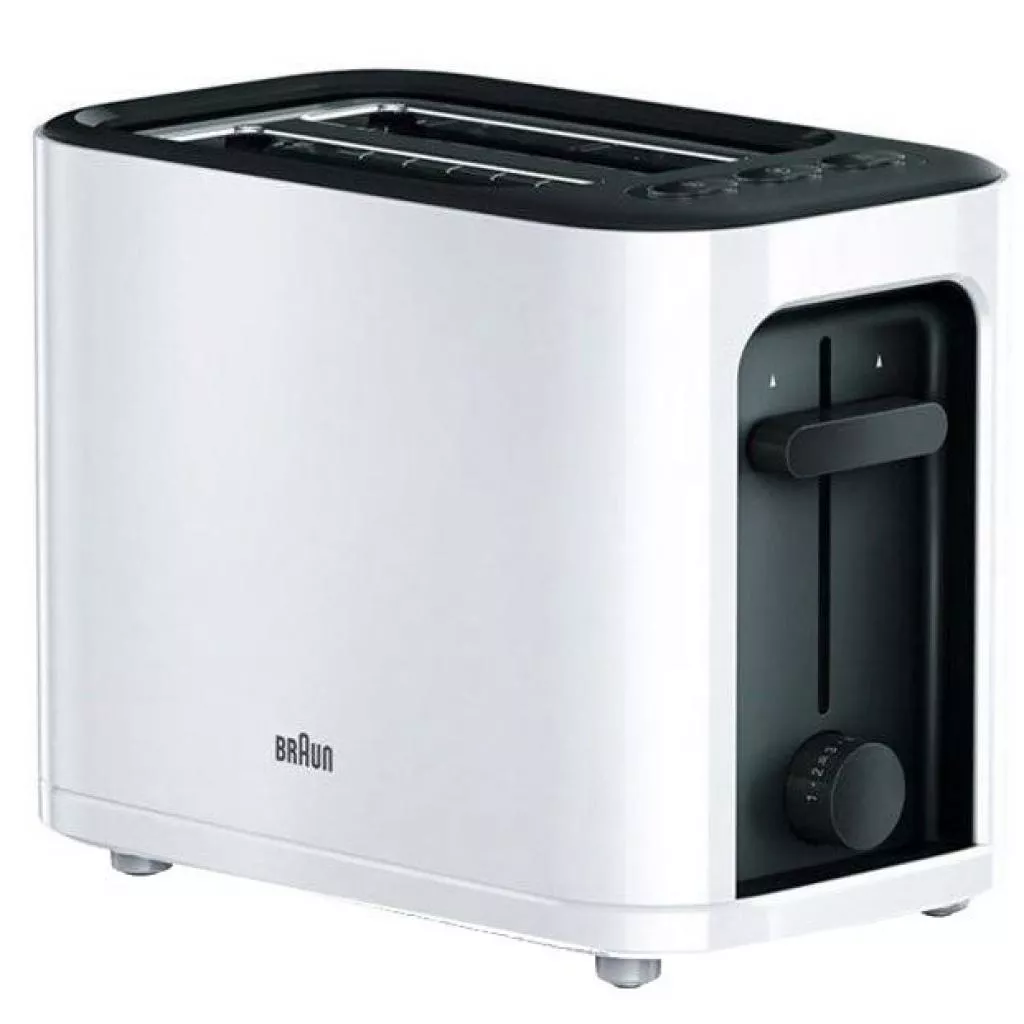 Стандартный набор функциональных возможностей включает: сразу два слота под тосты с удобными лифтами, которые можно высоко приподнять, чтобы извлечь готовый продукт безо всякого риска обжечься. Небольшой съемный поддон, где скапливаются крошки, не рассыпаясь вокруг, существенно облегчает очистку устройства после готовки. Мощность в 1000 Вт означает, что вам не придется ждать своих тостов долго – не более нескольких минут (в зависимости от выбранного режима). Доступно семь степеней обжарки, больше чем у многих моделей премиум-класса. Так что всегда можно приготовить легкий завтрак, идеально подходящий под ваш вкус. Причем, можете быть уверены – ничего не подгорит или, напротив, не останется не прожаренным. Превосходное качество изготовления техники Braun вне всяких сомнений. Тостер Braun HT 3000 очередной тому пример.