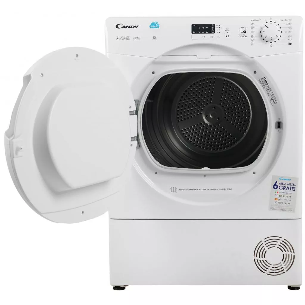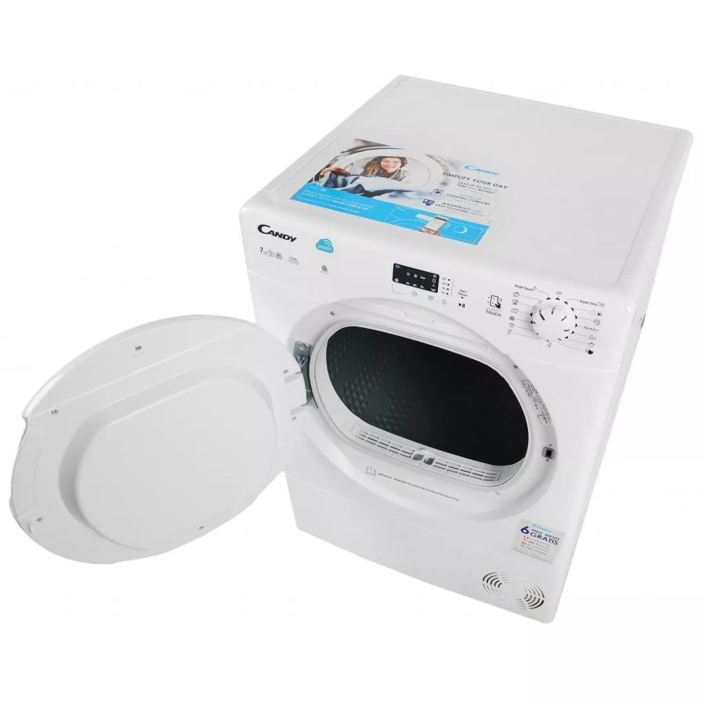 Сушильная машина CANDY CSC7LF-S обладает фронтальным типом загрузки. В вашем распоряжении будет барабан объёмом 80 л. Сочетание таких характеристик позволяет за один раз загружать не более 7 кг белья. Для максимального результата и высокой эффективности в аппарате используется конденсационный тип сушки. Устройство имеет в своём распоряжении пятнадцать режимов работы. Позаботиться о внешнем виде вашей любимой одежды поможет технология защиты от сминания.