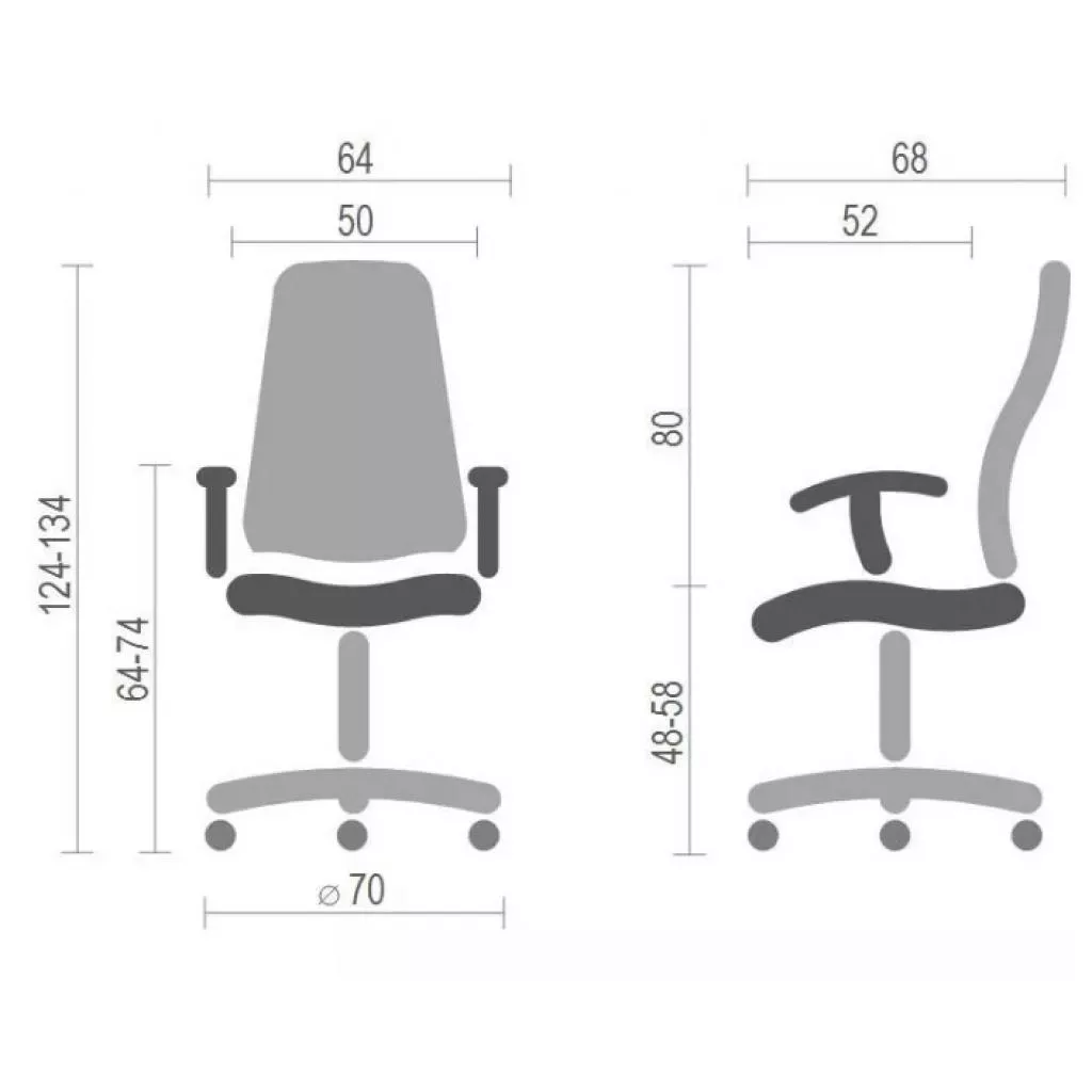| Нижний порог высоты подлокотников | 64 см |