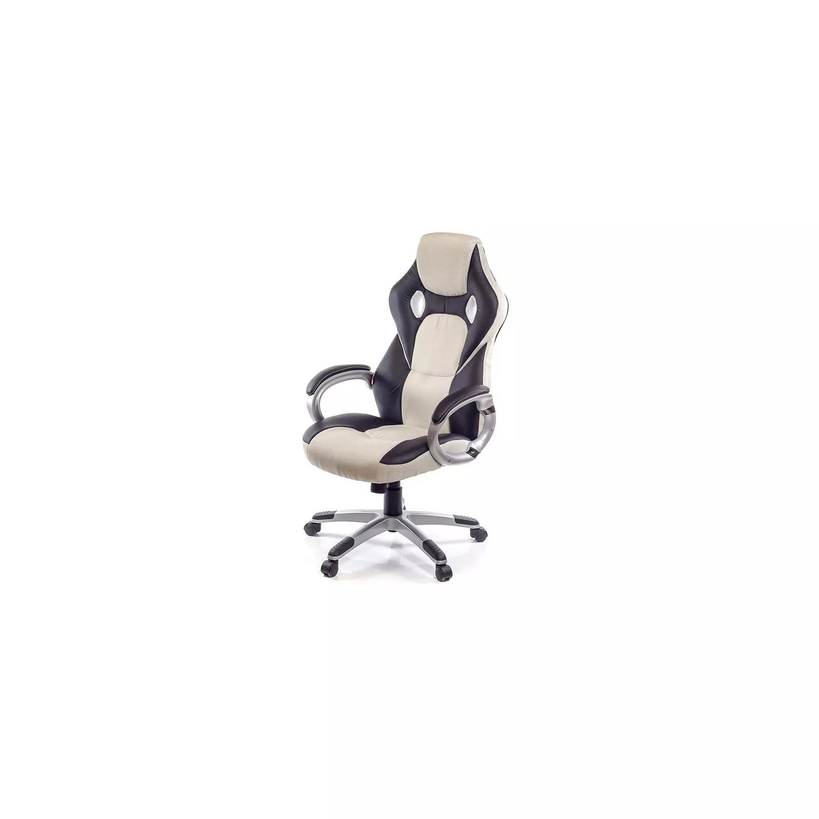 Обивка кресла Антарес комбинированная – экокожа нейтральных тонов отлично дополняется яркими цветными тканевыми вставками.