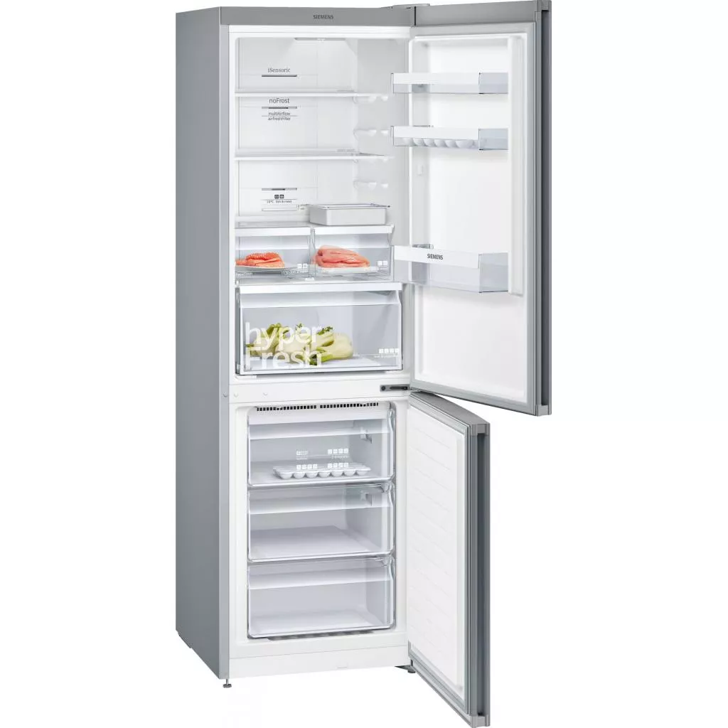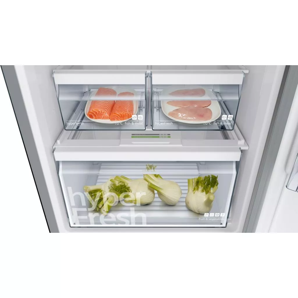 Тип холодильника - двухкамерный, объем холодильной камеры (полезный) - 237 л, объем морозильной камеры (полезный) - 87 л, тип управления - электронное, Frost Free - холодильное+морозильное отделения, 186 см, 60 см, 65 см, Цвет - нержавеющая сталь