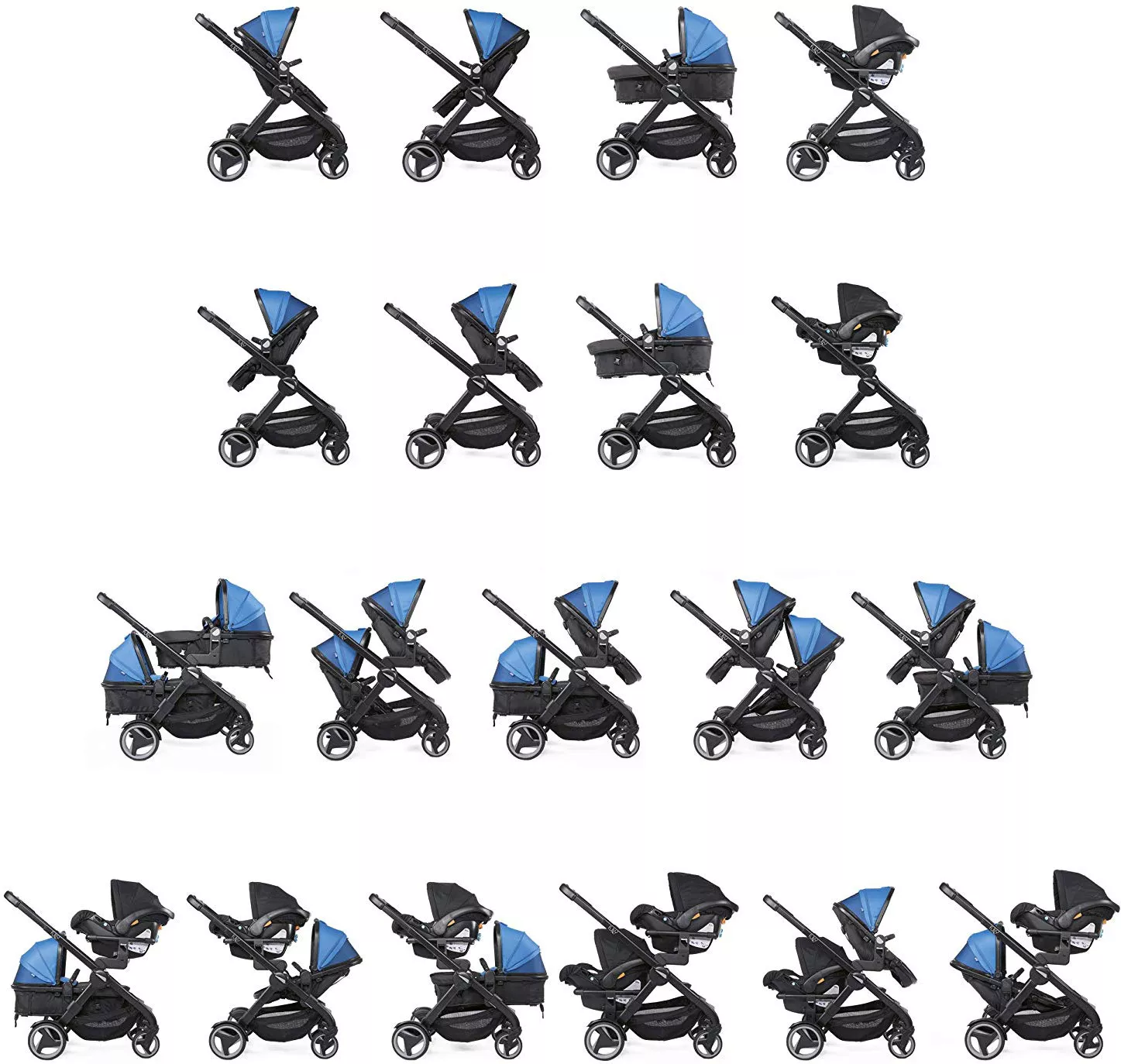 - 19 конфигураций. Коляску Chicco Fully Twin можно использовать в 19 различных конфигурациях, вам просто нужно выбрать свой вариант!