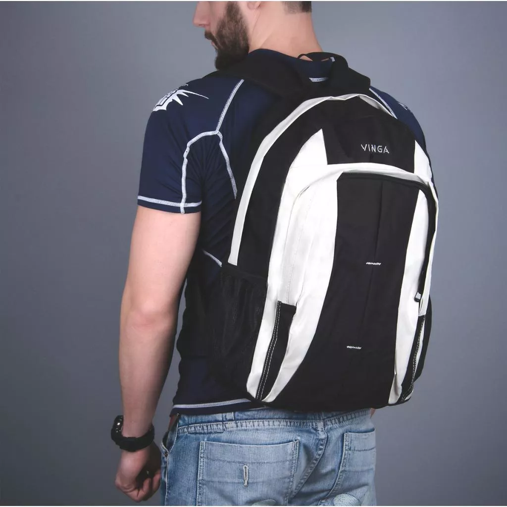 Рюкзак для ноутбука Vinga 15.6" NBP400BK black (NBP400BK) сочетает в себе удобство и привлекательный дизайн и отлично подойдет для ноутбуков с диагональю 15.6 дюймов и аксессуаров к нему. Рюкзак изготовлен из высокопрочного нейлона, отделения застегиваются на крупные надежные застежки-молнии. Имеет эргономическую спинную подложку, которая избавит от чувства дискомфорта даже при длительном ношении.