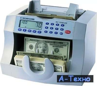 Счетчик банкнот Scan Coin 1500 UV/MG Скорость пересчета 500-1500 банк/мин.(9 скоростей), RS-232, 99-245v, 40 W, 6 кГ+ UV-контроль (УФ-детекция, 3 уровня)+ MG-контроль(магнитная детекция USD, EURO, 3 уровня)