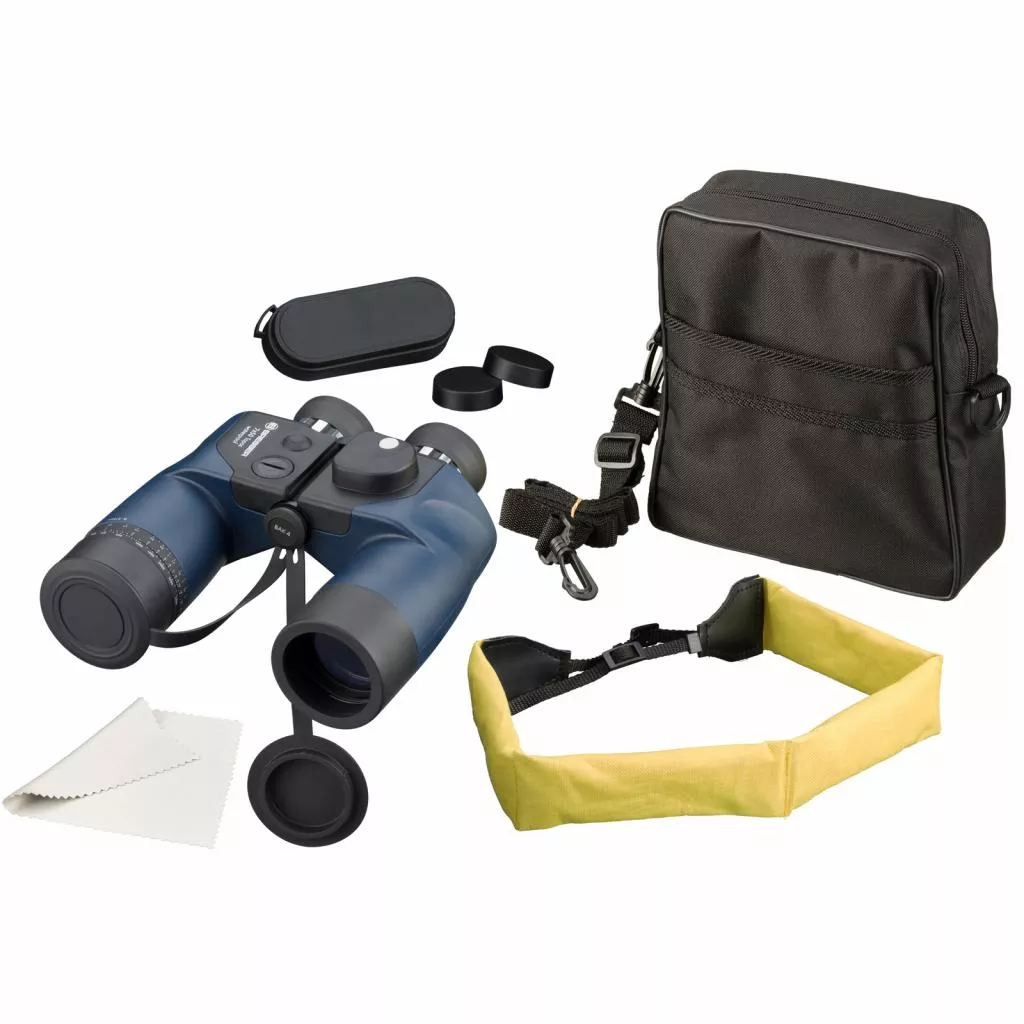 Бинокль Bresser Topas 7x50 WP Compass - специальный морской бинокль исключительно высокого качества. Корпус герметичен и заполнен азотом. Оптические повеерхности имеют многослойное просветляющее покрытие. Бинокль оснащен интегрированным компасом, дальномерной сеткой и шкалой.