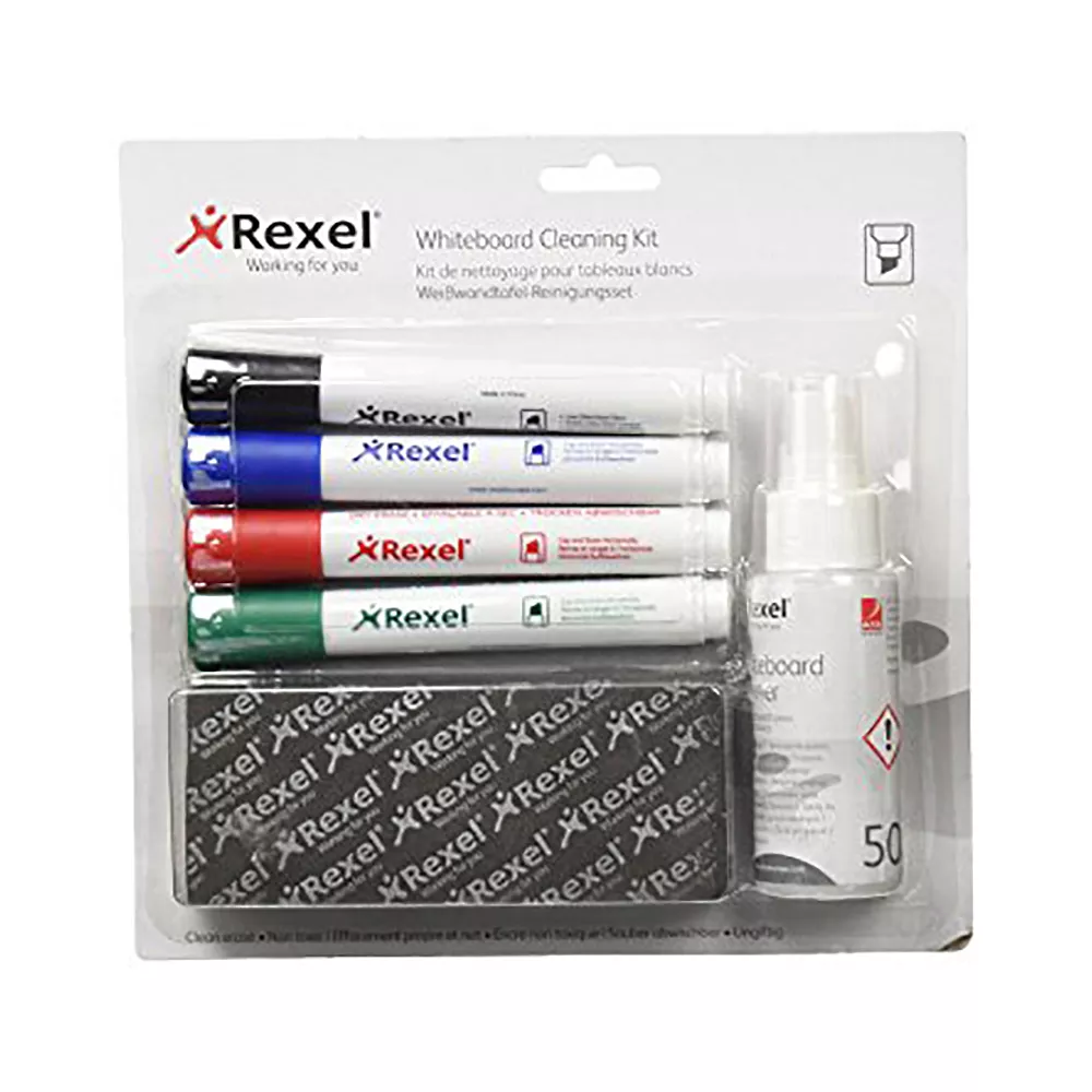 Стартовый пакет аксессуаров для ухода за маркетною доской. В набор Rexel для магнитно-маркерных досок входят: