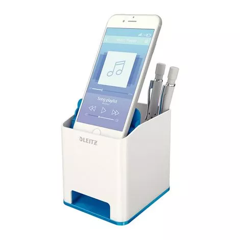 Привлекательная двухцветная подставка для ручек и смартфона Leitz премиум-качества, выполненная в ярких и стильных цветах с глянцевым покрытием. Эта подставка для ручек и смартфона с усилением звука идеально дополнит другие товары из серии Leitz WOW. Благодаря стильному и современному дизайну будет отлично смотреться дома или в офисе.