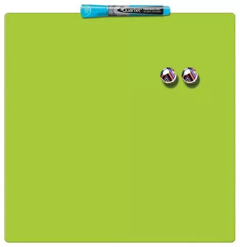 Магнитно-маркерная доска Quartet, зеленая, 36x36 см. В комплекте набор для крепежа, маркер для сухого стирания GlowWrite и два магнита.