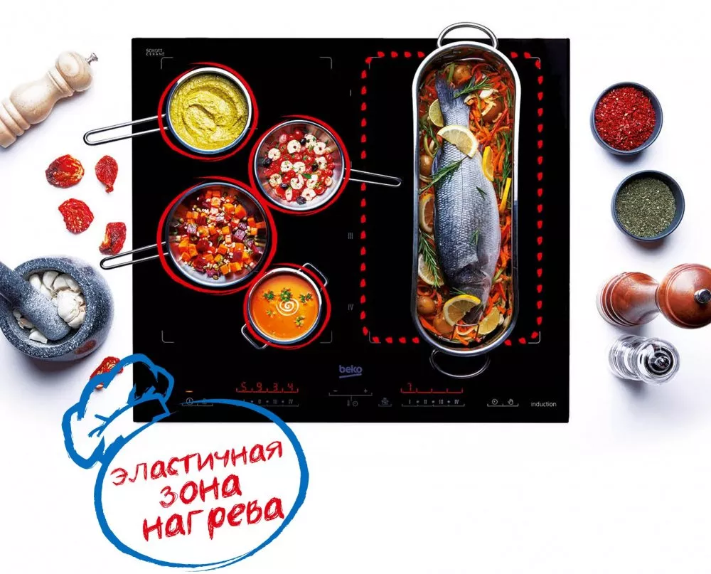 Новая технология Beko - IndyFlex™ - в индукционных плитах позволяет использовать больший объём поверхности благодаря эластичности площади для приготовления блюд. Пользователь имеет возможность объединить несколько нагревательных зон в одну большую, что даёт большую свободу при приготовлении блюд. Благодаря применению эластичной нагревательной зоны можно использовать как большие сковороды и кастрюли, так и маленькие ковшики, в зависимости от индивидуальных потребностей.
