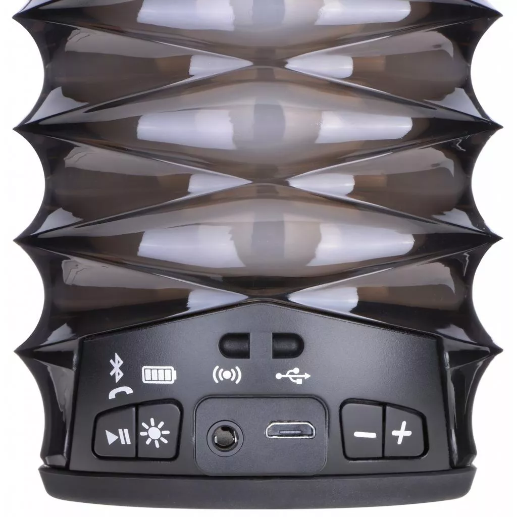 Различные оттенки, переливающиеся между собой, создавая фантастические градиенты, особенно в сочетании с медленной музыкой сделают каждый ваш вечер незабываемым. Колонка iBT76 от iHome будто создана для релакса и атмосферных посиделок. Колонка цилиндрической формы с фигурными гранями словно излучает LED подсветка на 360 °. Для того, чтобы слушать любимую музыку стоит только подключить колонку к мобильного телефона с помощью Bluetooth. Полного заряда хватает до 16-ти часов работы. Заряжать колонку можно благодаря USB-кабеля, который идет в комплекте. Также в комплект входит ремешок, благодаря которому колонку можно надеть на руку. На обратной стороне колонки имеются разъемы micro USB и aux-in (кабель для последнего в набор не входит).