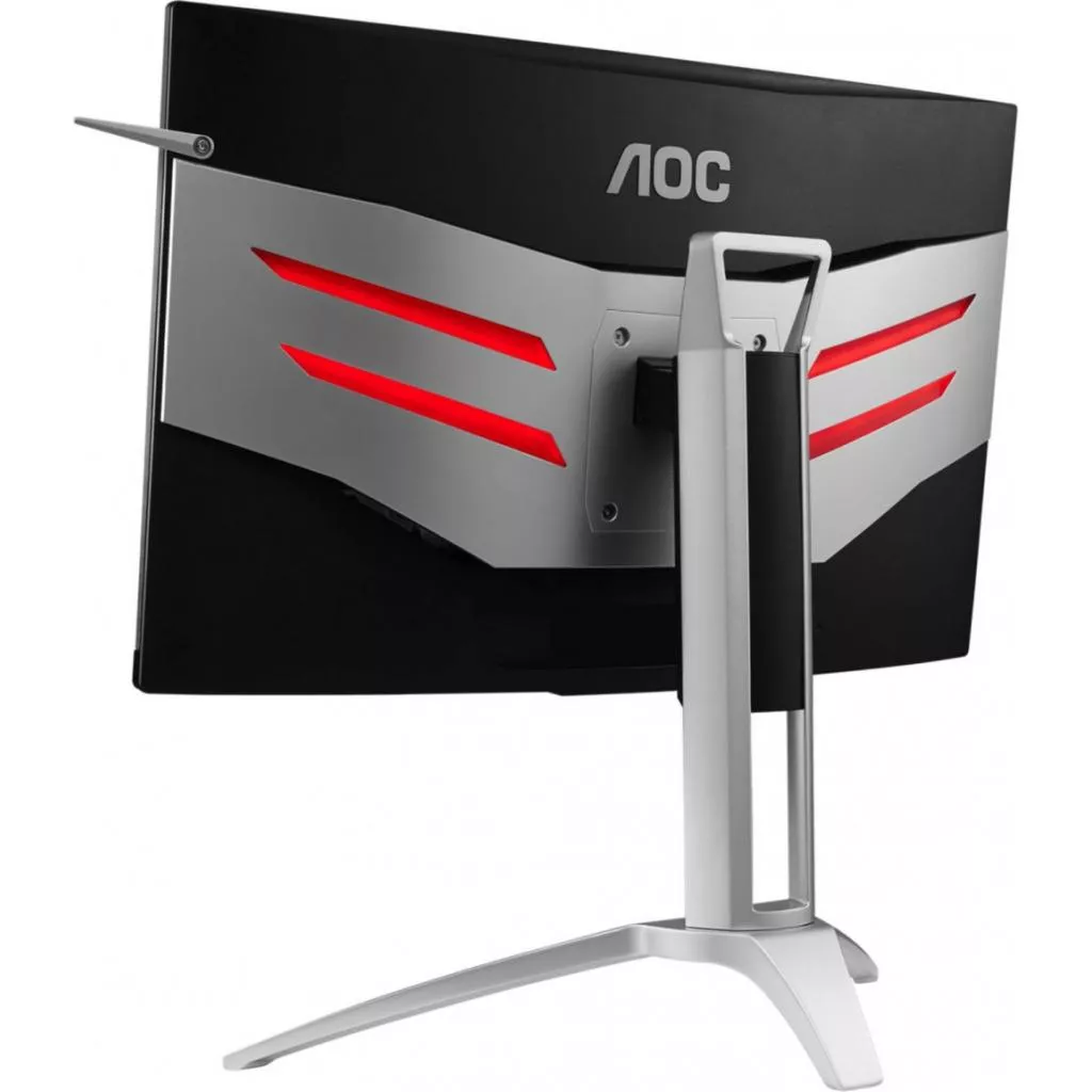 Дизайн изделия современный, стильный и поистине геймерский, выполненный в черном цвете и декорирован красными полосками на сером фоне. Такой дизайн напоминает крылья птицы. Подставка также имеет современный вид, что усиливает геймерский дизайн. Для удобства пользования, угол наклона монитора можно легко изменять. Благодаря имеющемуся креплению VESA, его можно подвешивать на стену, что сможет значительно сэкономить пространство в комнате.