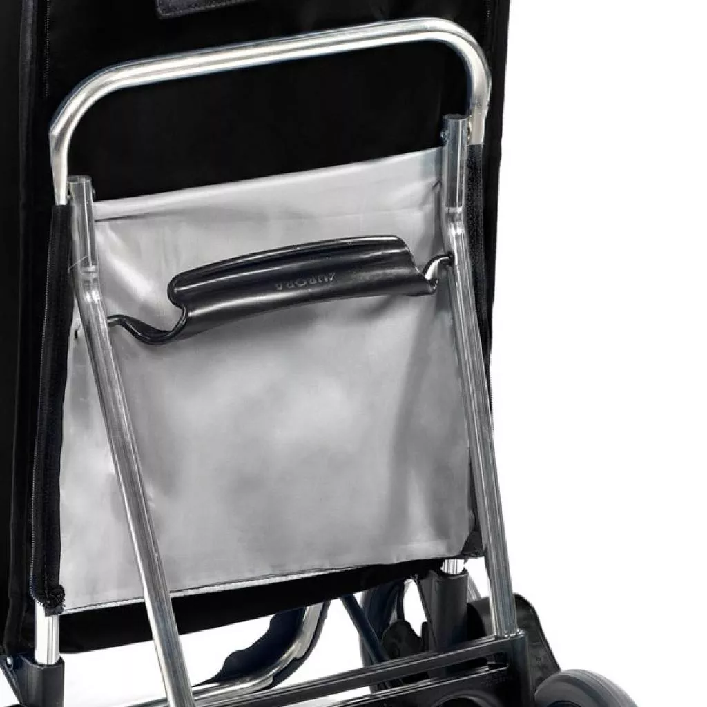 Модель Avanti 4_70 имеет свою отличительную особенность, а именно сумку объемом в 70 литров, что значительно больше, чем вместимость большинства сумкок-тележек, представленных на рынке. Наличие каркаса из алюминиевого сплава, который легко складывается одним движением, уменьшая размеры сумки-тележки вдвое, обуславливает удобство хранения и транспортировки. Шасси этой модели оснащено четырьмя колесами по два в каждом блоке, что позволяет без потери устойчивости выбрать необходимый угол наклона и при этом сохранить равномерно распределенную весовую нагрузку на шасси, что очень важно при использовании сумки-тележки пожилыми людьми. На фасадной стороне сумки расположен изотермический карман объемом в 5 литров, благодаря которому сохранится свежесть и температура продуктов. Удобная полиуретановая ударопрочная ручка, совмещенная с крючками для дополнительных пакетов. Хозяйственная сумка на колесах не только обеспечит удобство во время шоппинга, но и позволит избежать проблем со здоровьем, возникающих в результате нагрузки на позвоночник и суставы при ношении тяжестей. Сумки-тележки Aurora - это 100% итальянский продукт и современное решение для комфортного шоппинга.