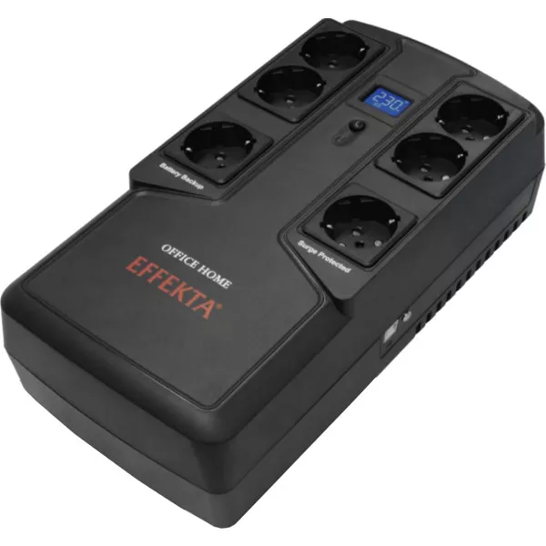 Тип архитектуры: линейно-интерактивный. Форма выходного сигнала: аппроксимированная синусоида. Выходная мощность (полная), ВА: 800 ВА. Выходная мощность (полная), Вт: 480 Вт. Диапазон входного напряжения при работе от сети: 180...270 В. Количество розеток (всего): 6. Количество розеток CEE 7: 6. Количество розеток с батарейной поддержкой: 3. Интерфейс связи с ПК: USB. Защита электросети: защита от перегрузки