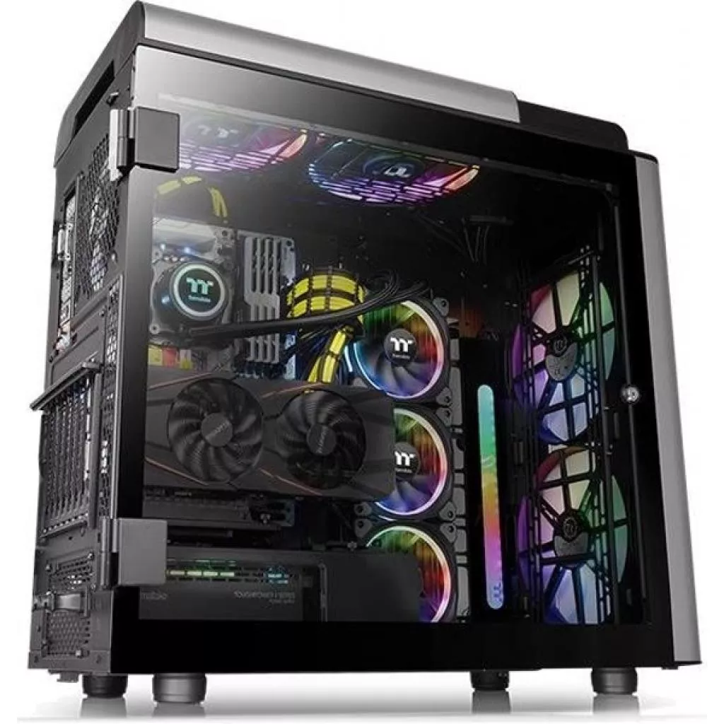 Для лучшего отвода тепла со всех компонентов компьютера, в корпусе штатно установлены 2 вентилятора 200мм 5V ARGB на передней панели и один 120мм стандартный вентилятор на задней. Опционально на передней панели можно установить два вентилятора 200мм/140мм или три вентилятора 120мм, до двух вентиляторов 140мм на верхней панели. Такая гибкость в конфигурации, дает возможность энтузиастам собрать компьютер даже с самым "горячим" железом.