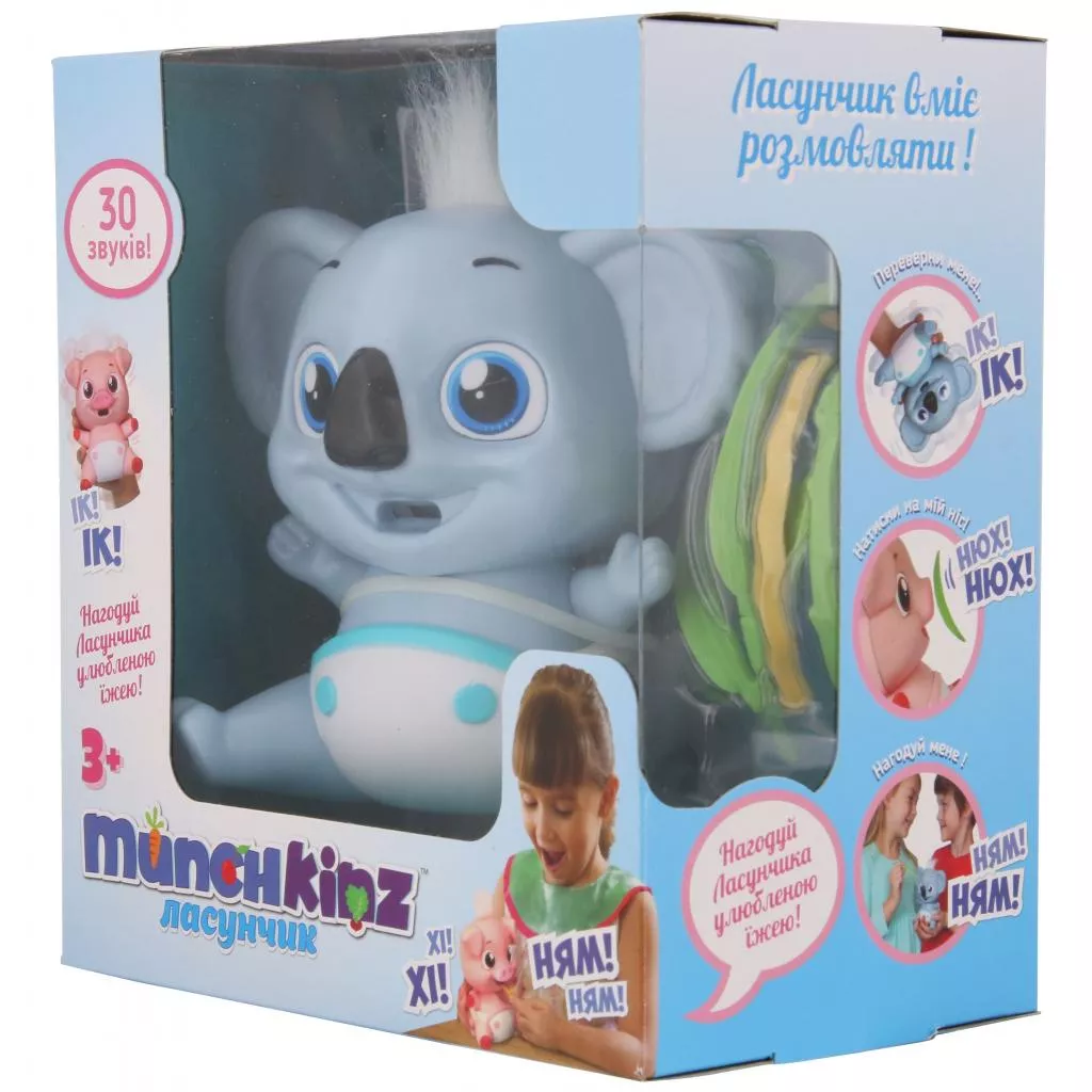 Munchkinz – это милые малыши, которые все время хотят кушать. В комплекте с каждым Munchkinz есть специальный набор еды – два маленьких лакомства и одно большое (делится на 3 кусочка). У каждого животного свои вкусняшки.