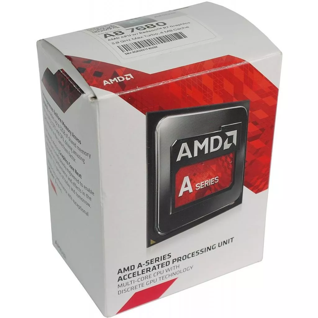 AMD A8–7680 имеет четырёхъядерную конфигурацию и работает на частоте 3,5 ГГц с возможностью динамического разгона до 3,8 ГГц. Помимо вычислительных ядер, на подложке процессора находится видеоускоритель AMD Radeon R7 с частотой 1029 МГц. Показатель TDP чипа составляет 45 Вт.