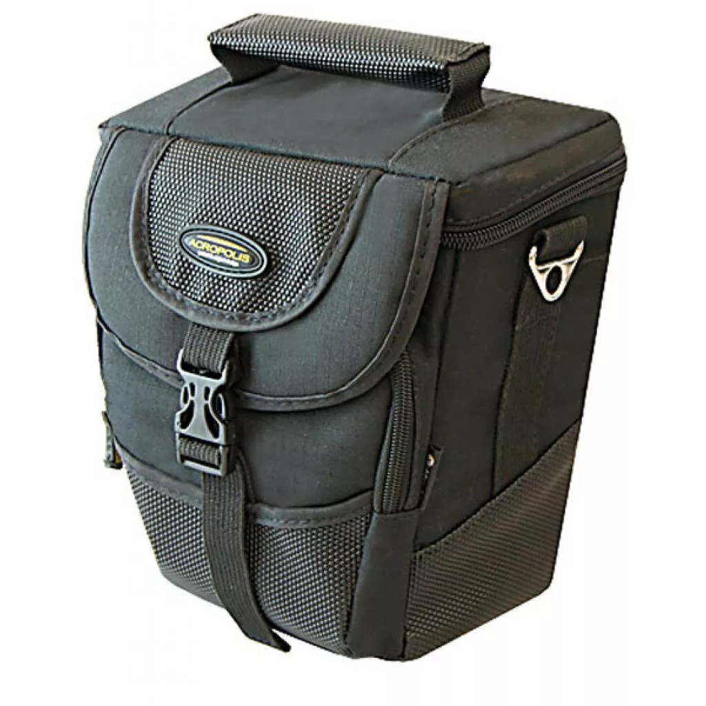 Фото-сумка ACROPOLIS SV-22 BK компактной треугольной формы, закрывается сверху накидным клапаном, который фиксируется по периметру молнией, а спереди дополнительно защелкой. Такая конструкция обеспечивает защиту основного отсека с камерой от пыли, влаги и позволяет отдельно использовать на ходу передний, достаточно вместительный аксессуарный карман.