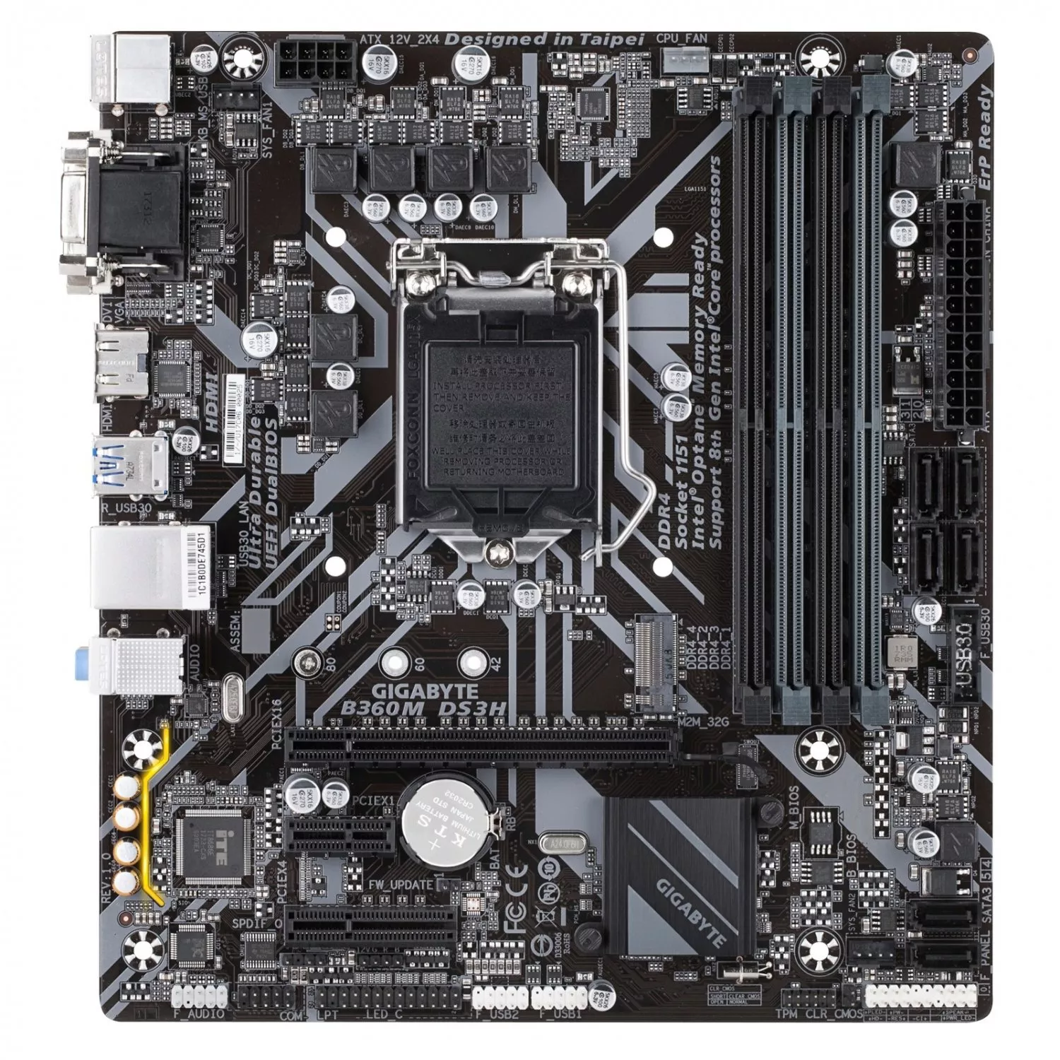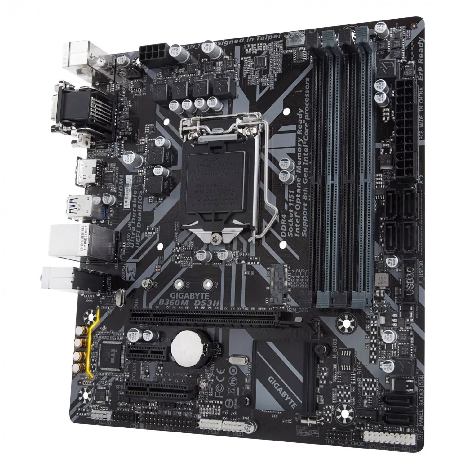 - Intel B360 Ultra Durable motherboard with GIGABYTE 8118 Gaming LAN, PCIe Gen3 x4 M.2, 7 colors RGB LED strips support, Anti-Sulfur Resistor, Smart Fan 5, DualBIOS, CEC 2019 ready
