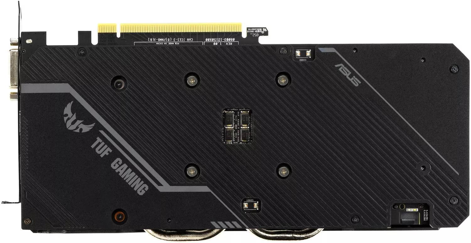 Печатную плату видеокарты защищает прочная усилительная пластина, установленная на ее обратной стороне. Кроме того, эта пластина прикреплена к кожуху кулера, создавая с ним единую жесткую раму, которая предотвращает повреждение компонентов устройства при его транспортировке и установке.