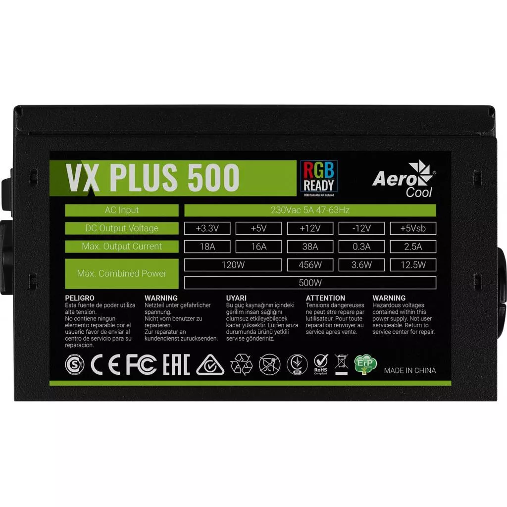 Aerocool 500W VX Plus 500 RGB - доступный блок питания с форм-фактором ATX, который обеспечит стабильную и надежную работу системному блоку. Изделие позволит собрать систему базового уровня, ведь имеет мощность 500 Вт. Блок питания оснащен практически бесшумным вентилятором диаметором 12 см с оптимизированной системой регулирования скорости.