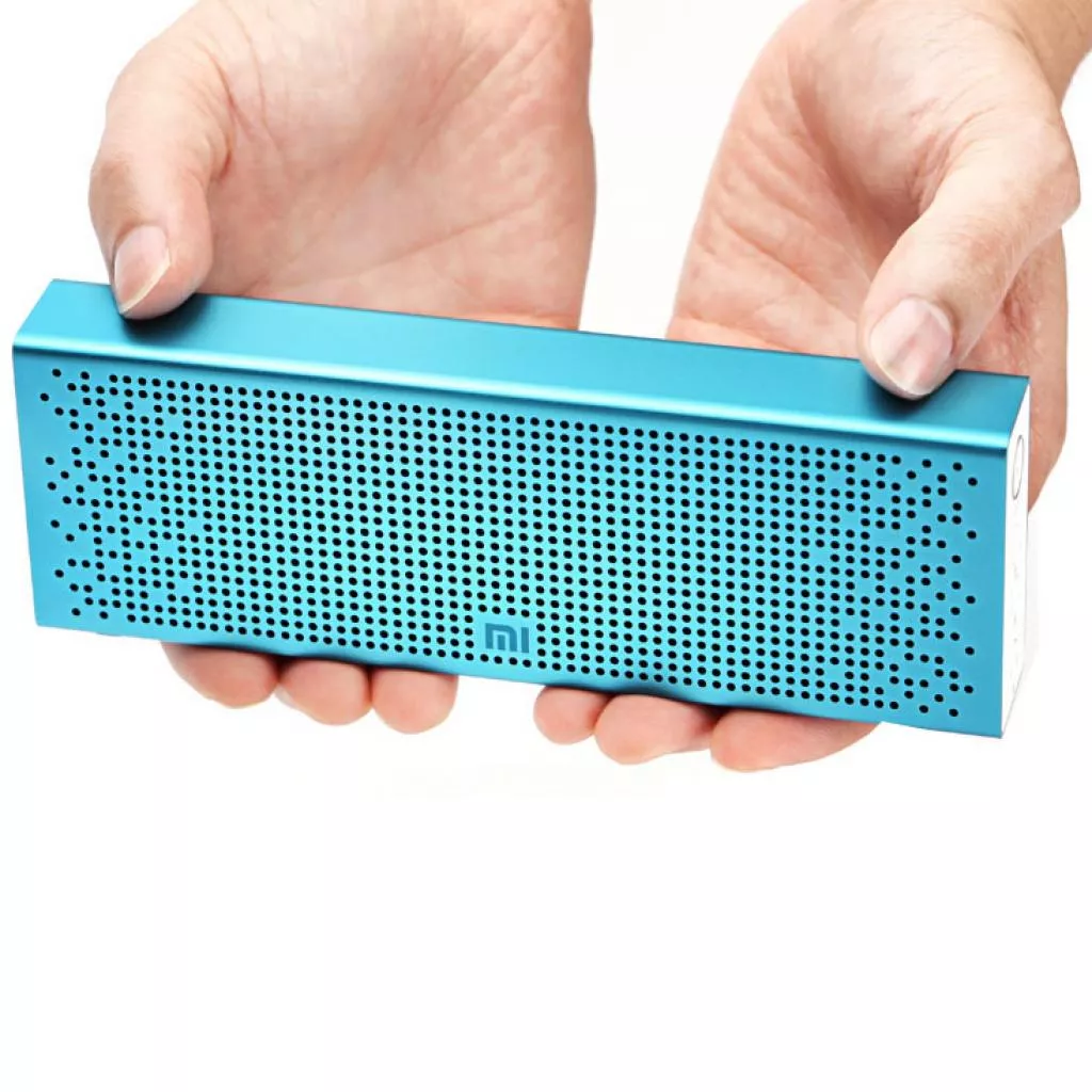 Портативная акустика Xiaomi Mi Speaker Blue – это девайс, выполненный в форме небольшого прямоугольника, всю плоскость которого занимает динамик, прикрытый металлической пластиной.
