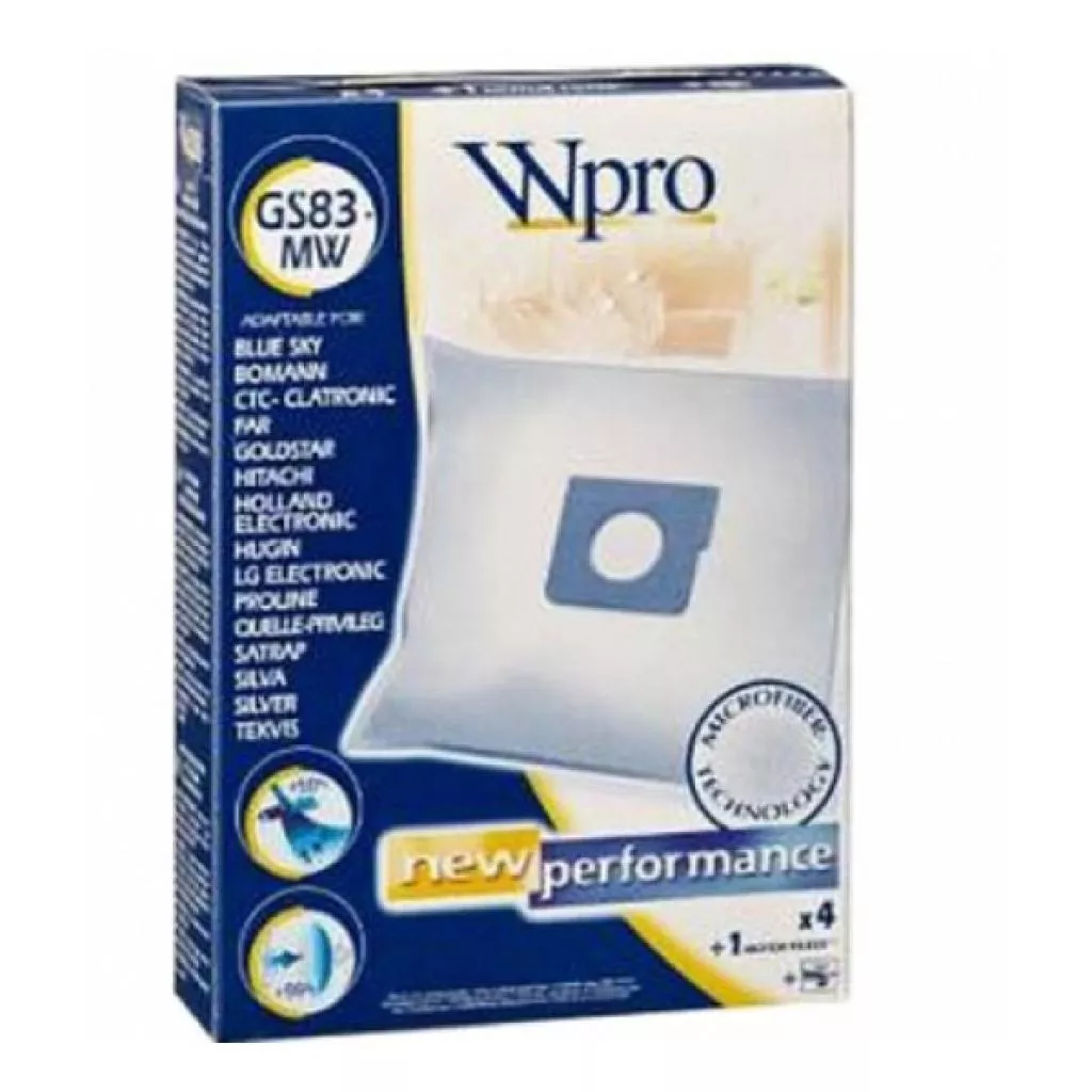 Аксессуар к пылесосам WPRO GS83-MW (481281718615) - это комплект аксессуаров для пылесоса. В наборе WPRO GS83-MW 4 мешка-пылесборника и моторный фильтр.
