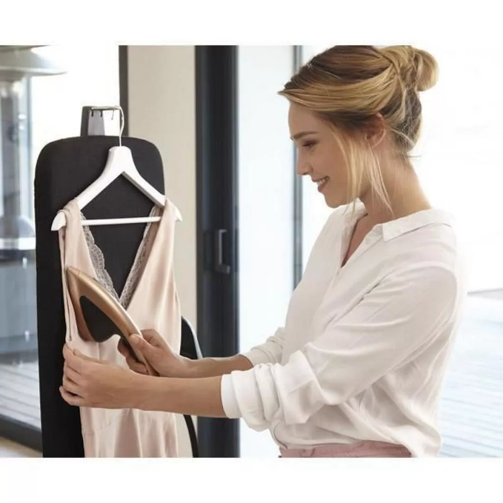 Устройство Tefal IXEO QT1020E0 создано по принципу «два в одном» и сочетает в себе функции глажения и отпаривания. Встроенную доску можно устанавливать в трёх разных положениях, выбирая оптимальный вариант в соответствии со стоящей перед вами задачей. Нужно всего 45 секунд, чтобы утюг нагрелся и пришёл в рабочее состояние. Мощность 1600 Вт и паровой удар позволяют справиться с самыми жёсткими складками. Отсоедините девайс от основания и ухаживайте за шторами и мебелью, не перемещая весь комплекс. За счёт этого вы легко освежите вещи, справитесь со стойкими загрязнениями и избавитесь от болезнетворных микробов и бактерий. Корпус регулируется по высоте. Для большей мобильности предусмотрены колёсики. Благодаря ёмкости резервуара 1 л не надо часто прерываться, чтобы долить воду, а при необходимости это можно сделать, не отключая прибор.Рейтинг страницы: 4.9
