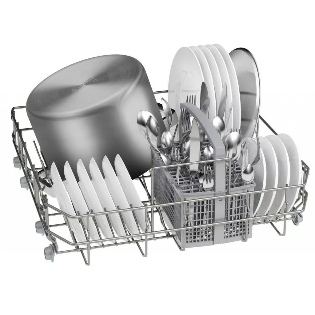 Помощница для большой семьи. Встраиваемая посудомоечная машина Bosch SMV24AX20K в исполнении из нержавеющей стали имеет стандартную ширину 60 см и рассчитана для 12 столовых приборов.