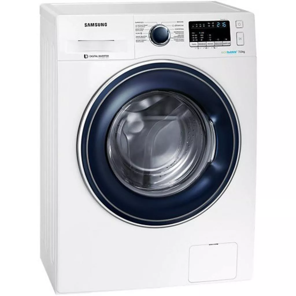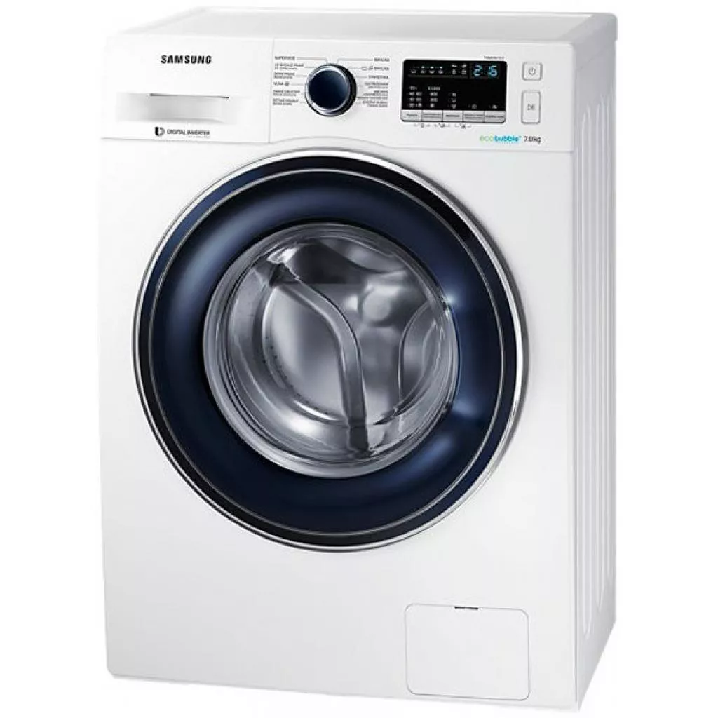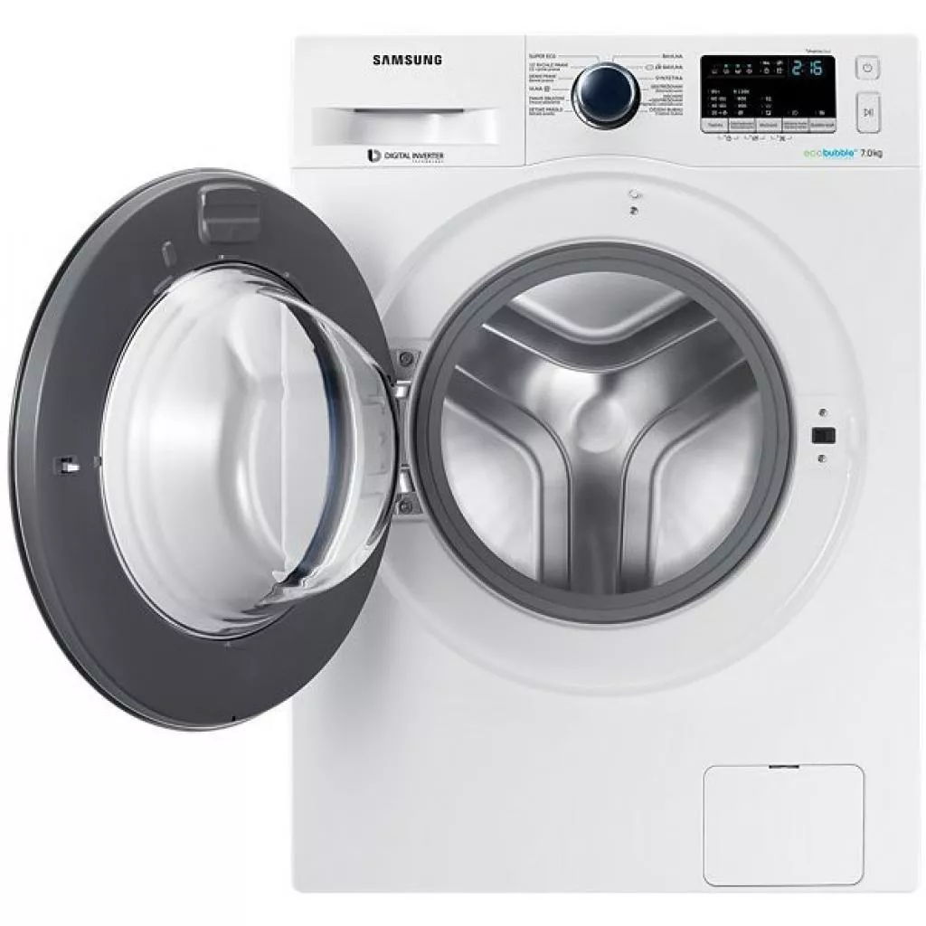 Стиральная машина SAMSUNG WW70K42101WDUA имеет барабан с максимальной загрузкой белья до 7 кг. В зависимости от типа ткани и степени загрязненности предусмотрено 12 автоматических программ. Максимальное количество оборотов в режиме отжима составляет 1200 об/мин. Модель оборудована инверторным двигателем. Он является надёжным износоустойчивым механизмом, обеспечивающим практически бесшумную работу. В стиральной машине SAMSUNG реализована технология Eco Bubble. Она заключается в генерации воздушных пузырьков, которые полностью растворяют стиральный порошок перед началом стирки. Богатая воздухом смесь лучше проникает между волокнами ткани, удаляя даже стойкие загрязнения. Также стоит отметить, что модель оснащена системой автоматического выявления неисправностей Smart Check. Она позволяет обнаруживать ошибки и рекомендует способ их устранения через смартфон с помощью сканирования.