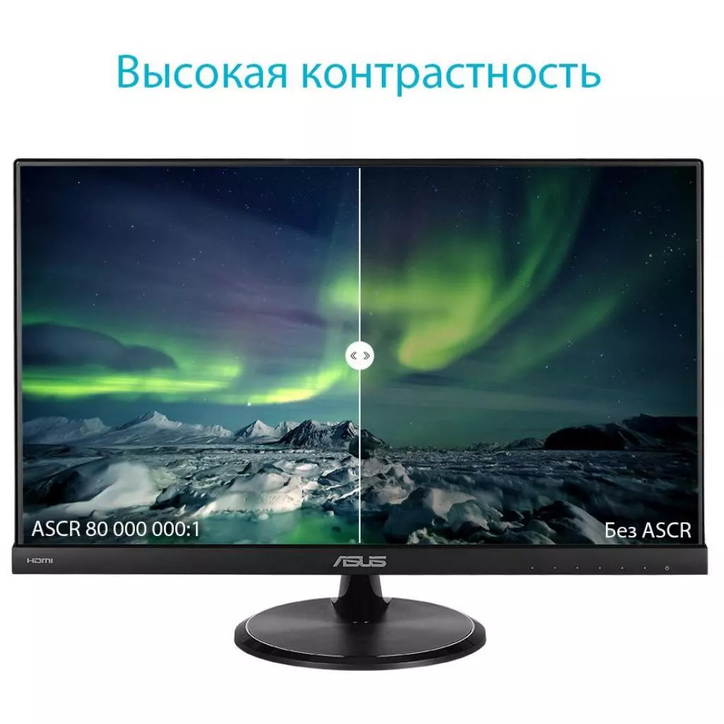 Технология ASCR (Asus Smart Contrast Ratio) служит для автоматического изменения яркости подсветки в соответствии с характером текущего изображения. Она позволяет добиться высокой контрастности на уровне 80.000.000:1 и будет особенно полезной при просмотре фильмов. Максимальная же яркость монитора составляет 250 кд/м². Для еще большего повышения качества картинки в мониторах Asus реализована технология VividPixel, ответственная за улучшение резкости изображения и насыщенности цвета.