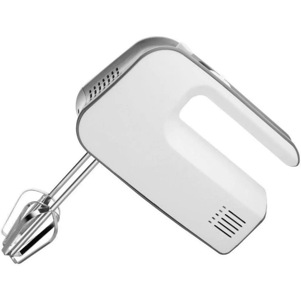 В комплектацию этого миксера входит пара венчиков для взбивания. Здесь также предусмотрена пара крюков-венчиков для замеса теста. Все насадки выполнены из качественного износостойкого метала, они не снашиваются, не меняют форму даже при интенсивном режиме работы. С таким набором необходимых насадок вам по плечу практически любое блюдо. В миксере реализовано 5 скоростей, чтобы вы смогли подобрать необходимую интенсивность работы в зависимости от конкретного задания, которое перед вами стоит. Эргономична форма рукоятки обеспечивает надежный хват во время работы.