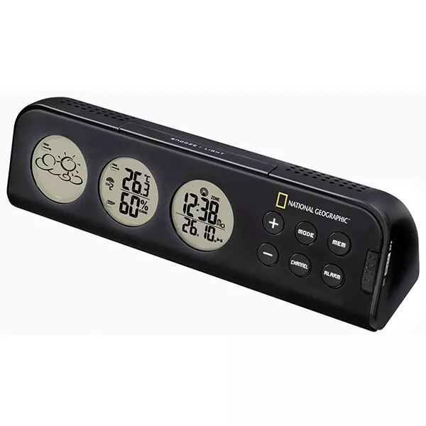 настольная метеостанция с оригинальным дизайном и хорошей функциональностью. На дисплеях станции отображается информация о температуре внутри и снаружи помещения, относительной влажности воздуха в помещении, а также прогноз погоды.