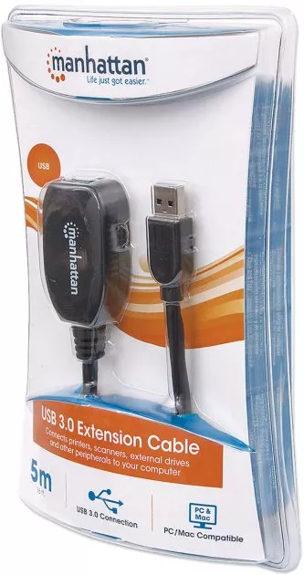 С удлинителем Manhattan легко преодолеть ограничения по расстоянию для подключения USB-устройств.