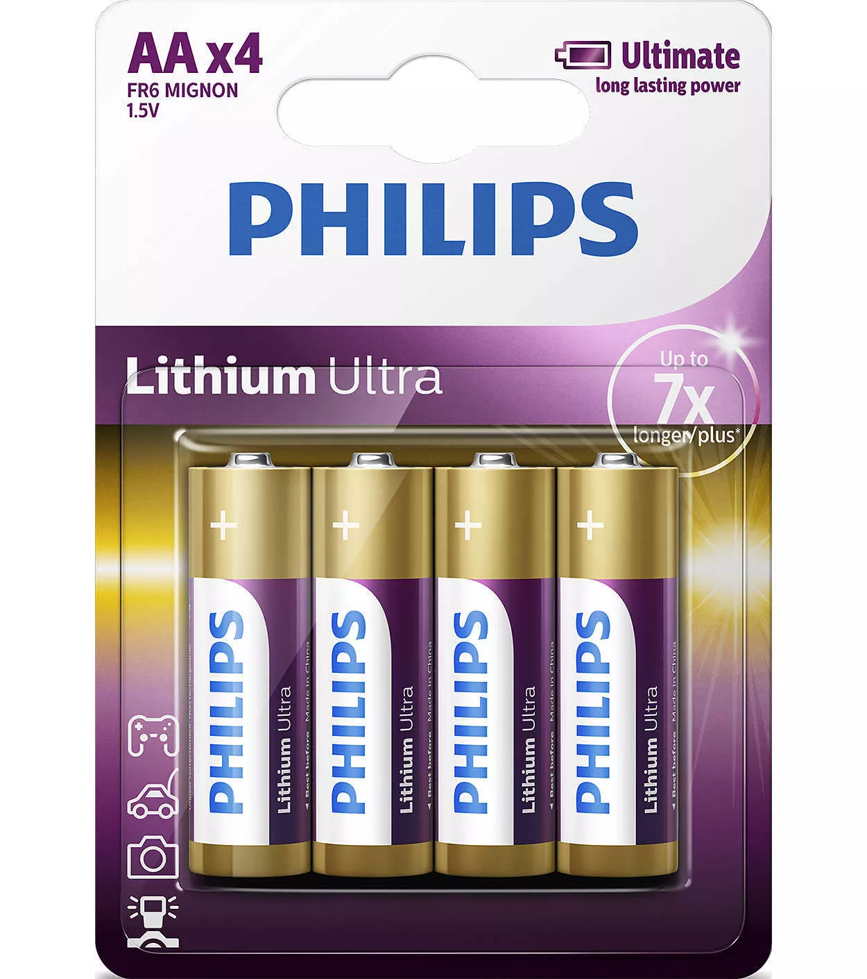 Литиевые батареи Ultra от Philips идеально подходят для портативных устройств с высоким энергопотреблением. Они служат в 7 раз дольше, чем щелочные батареи, а значит, у вас будет больше времени на развлечения. Это именно то, что вы искали.