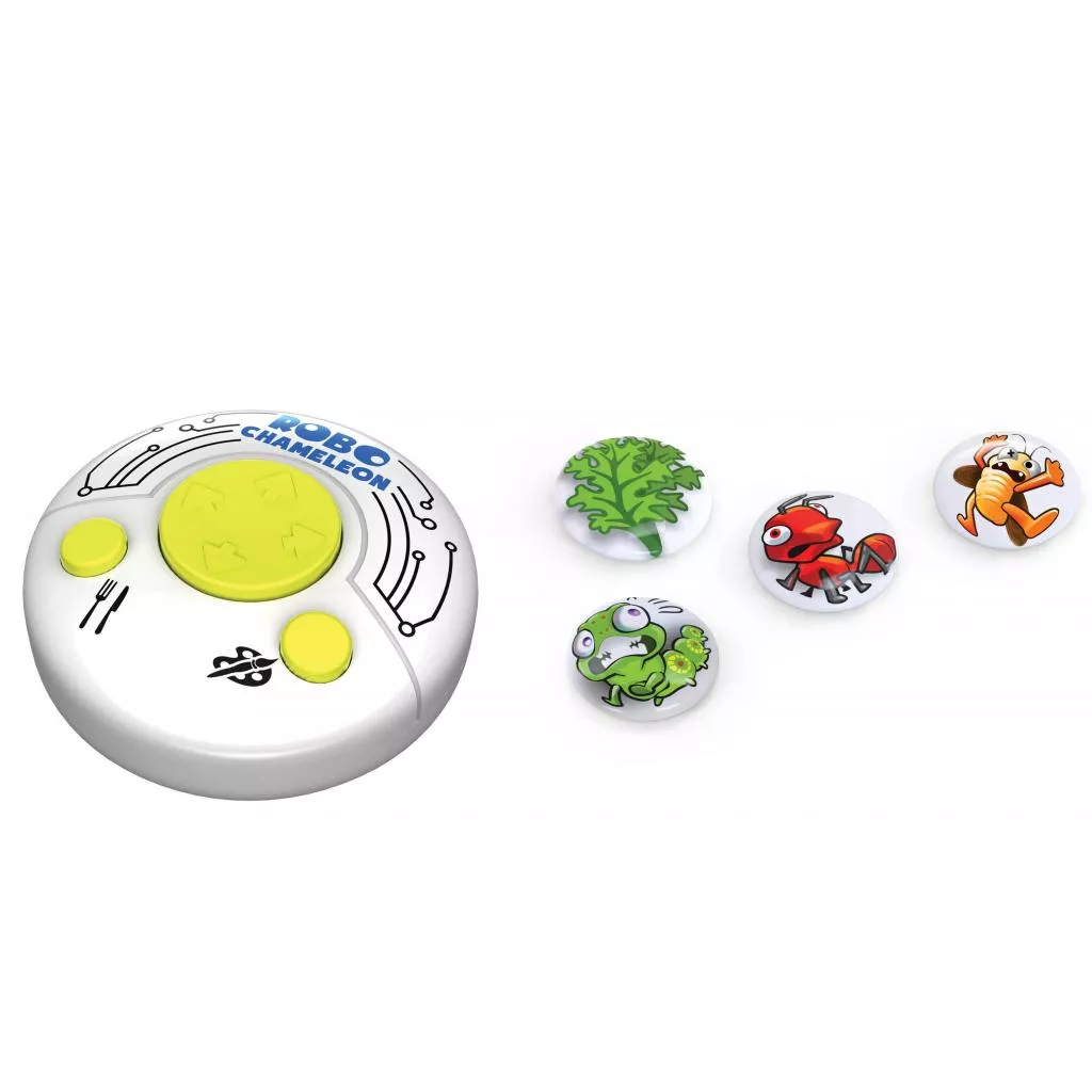 Белоснежный робот с стильными узорами и подсветкой на корпусе умеет передвигаться и добывать себе еду. С помощью пульта ребенок сможет управлять игрушкой, развивая координацию движений. Роботизированный хамелеон понравится и мальчикам, и девочкам. Особенности: робот выполнен в виде Хамелеона белого цвета. В комплекте идет круглый белый пульт, которым можно управлять роботом. С помощью него можно заставить Хамелеона поехать назад, вперед, влево, вправо, а также управлять языком. Язык ящерицы высовывается и может хватать фишки с изображением насекомых и растений, которые входят в набор.