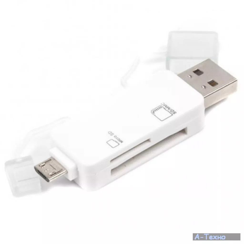 Особенности: интерфейс: Micro USB / USB. Количество слотов: 2. Тип карт памяти: Micro SD / Micro SDXC / SD SDHC / MMC RS-MMC. Совместимость ОС: Win XP / ME / Vista/ 7 / 8 / 8.1 / Mac OS 10.5 / Android 4.x. Цвет: белый.