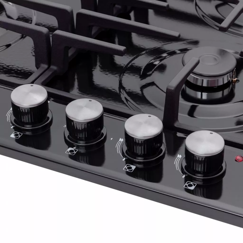 Сложно представить современную кухню без варочной поверхности Perfelli HGM 61490 BL, которая не только облегчит вашу жизнь, но и качественно обновит кухонный интерьер. Поверхность обладает простым управлением в виде поворотных переключателей с фронтальным расположением. С их помощью пользователь сможет регулировать мощность пламени, а также включать и выключать агрегат.