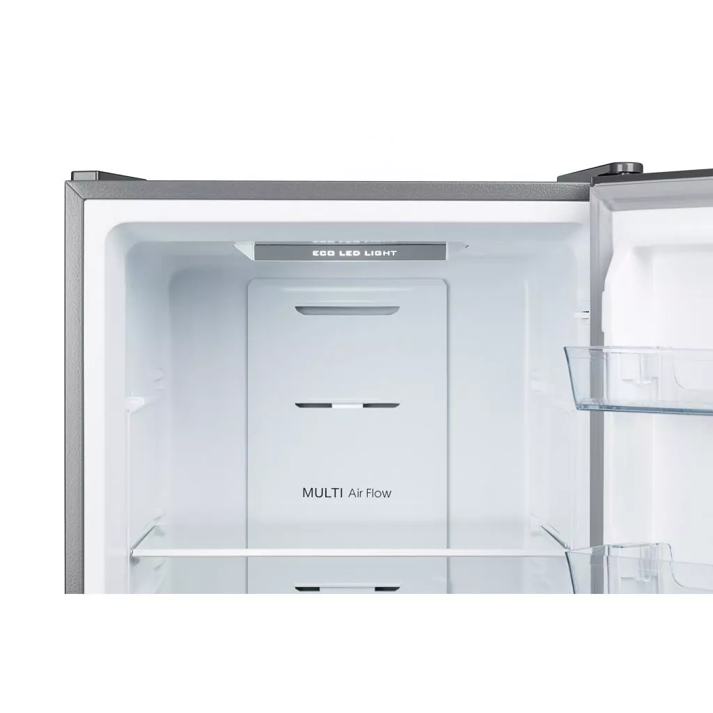 Двухкамерный холодильник серого цвета с электронным управлением и системой охлаждения No Frost. Подходит для офиса или квартиры больших размеров. Класс энергосбережения холодильника - А++, есть динамическая LED-подсветка и возможность перенавешивания дверей.