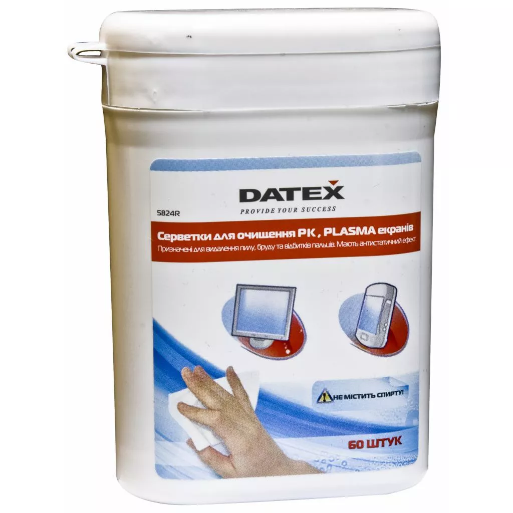 DATEX for TFT, Plasma tub-60-pack (5824R) - влажные салфетки для ухода за мониторами. 60 влажных салфеток в пластиковой тубе. Для удаления пыли и грязи, отпечатков пальцев.