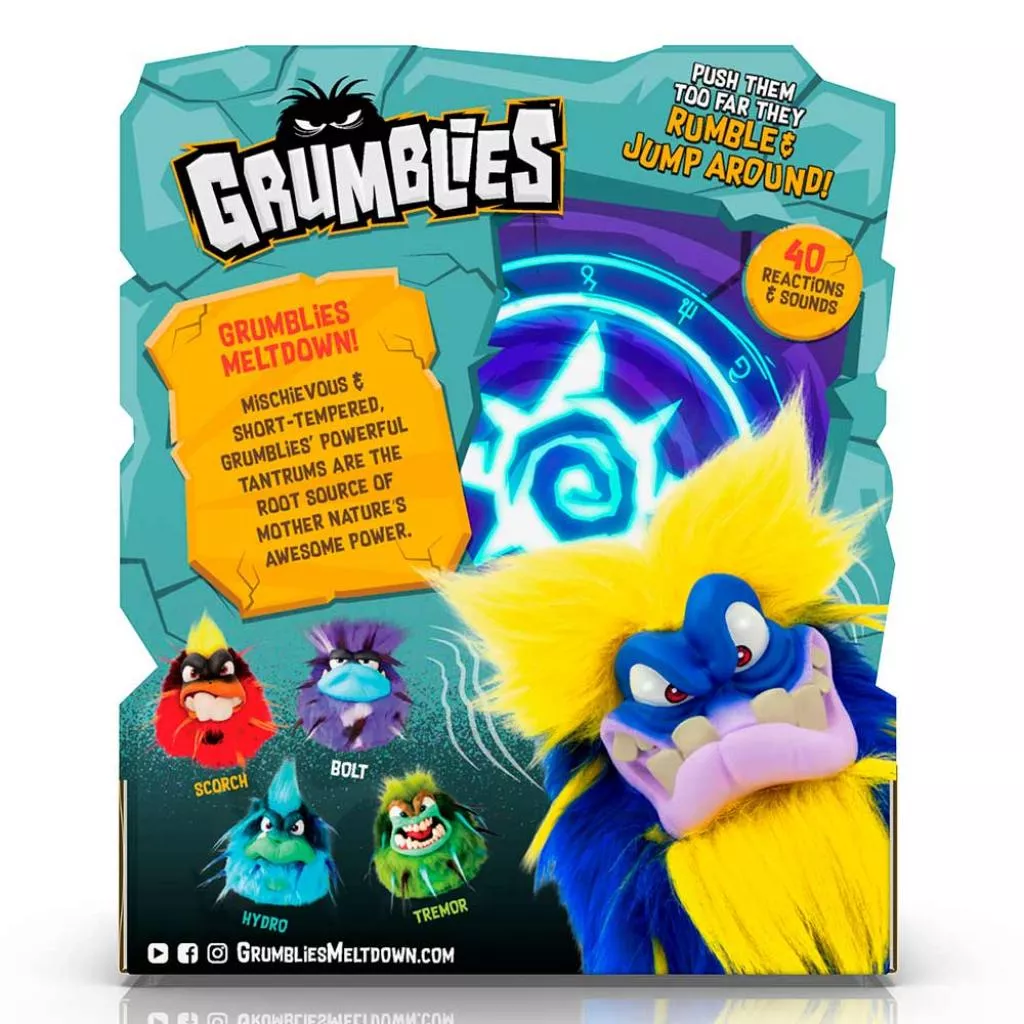 Особенности: Grumblies Моджо наделен силой магии и окутывает себя тайной. Чем больше его раздражать — тем более сердитым он становится! Попробуйте разозлить! Нажмите на живот, чтобы разбудить Grumblies, но будьте внимательными — нажатие может привести к побочным эффектам! Grumblies можно трясти, переворачивать, постукивать по нему. От каждого из действий он будет злиться все больше и больше. Как только Grumblies выйдет из себя — он начнет яростно метаться из стороны в сторону, сильно ворчать и его глаза яростно засветятся красным! Более 40 различных реакций и звуков.