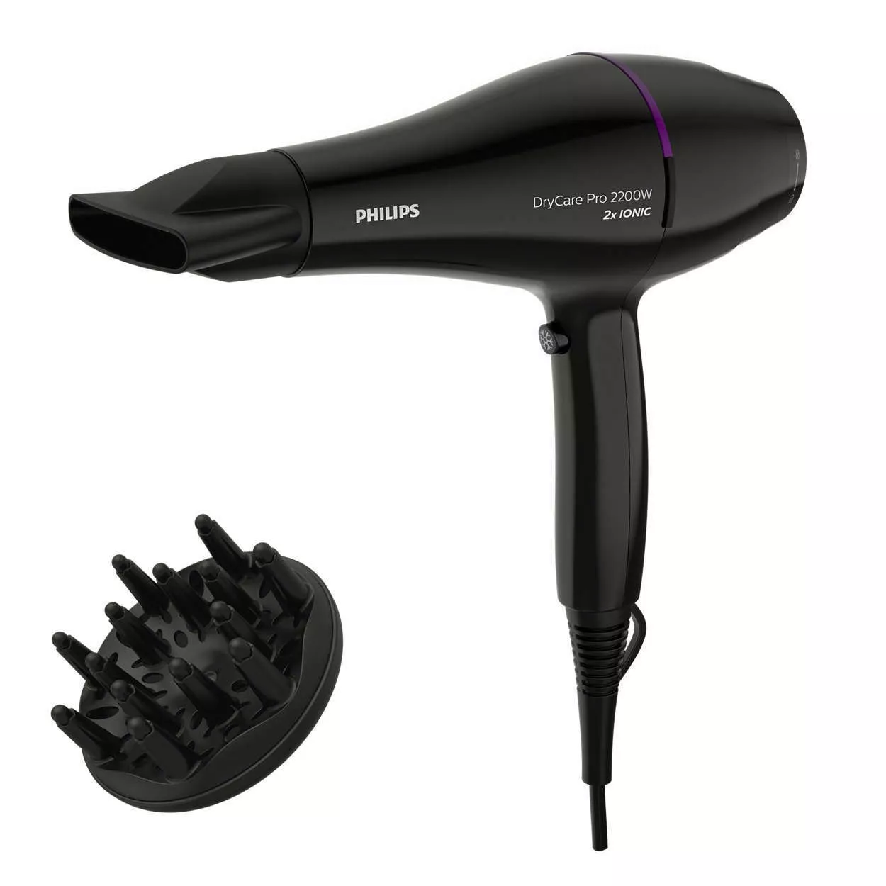 Этот фен Pro мощностью 2200 Вт создает мощный поток воздуха. Удачное сочетание мощности и скорости помогает сократить время сушки и облегчить создание укладки.