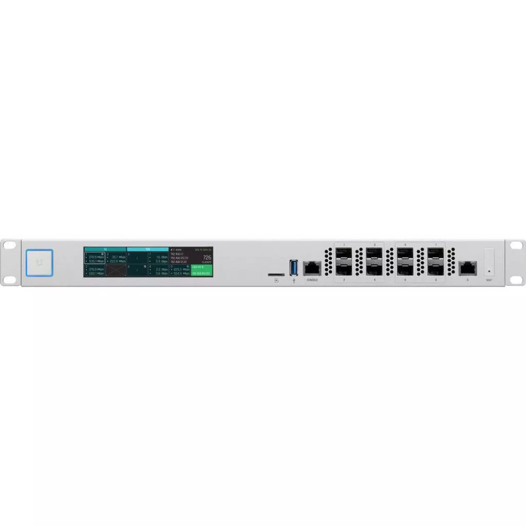 Маршрутизатор идеален для развертывания крупных сетей UniFi. Увеличенное количество сетевых портов, работающих на гигабитных скоростях позволяют подключить к UniFi Security Gateway XG множество устройств – как свитчей так и конечного пользовательского оборудования. Дополнительным плюсом к защите является наличие встроенного фаервола, при помощи которого можно блокировать нежелательные соединения. Помимо интерфейса Ethernet модель имеет так же и SFP порты, к которым можно подключать линии оптоволоконного типа. Так же имеется на борту устройства и порт USB.
