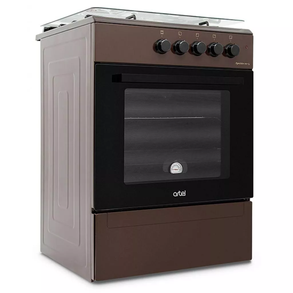 Плита ARTEL Apetito G Brown – эргономичная и функциональная кухонная плита для вашей кухни, оснащена варочной поверхностью с 4 газовыми конфорками разной мощности. Различный размер конфорок обеспечит разную мощность подачи газа и дает возможность как быстро нагреть воду, так и долгое время тушить блюдо на медленном огне. Также поверхность оснащена высококачественными эмалированными подставками для посуды.