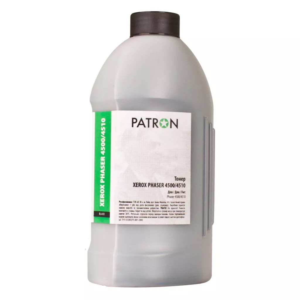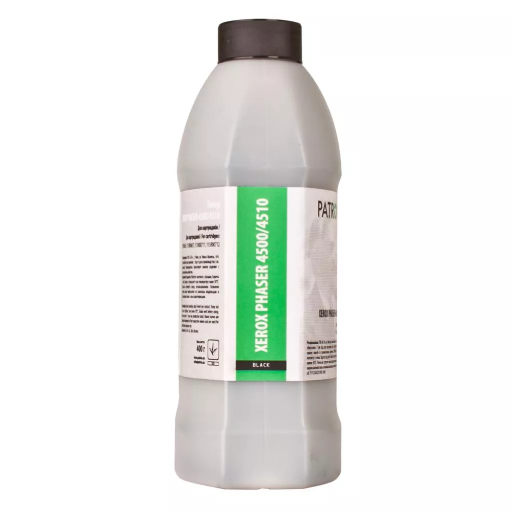 Тонер PATRON XEROX PHASER 4500/4510 (T-PN-XP4500-400) - это специальный тонер для заправки картриджей лазерных монохромных печатающих устройств. Благодаря фирменному полупрозрачному флакону из полипропилена тонеры Patron минимально подвержены воздействию окружающей среды.