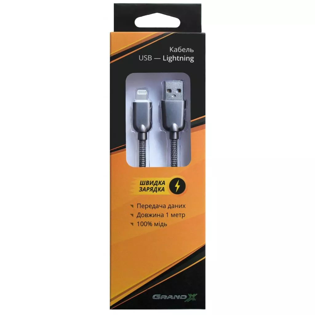 Дата кабель Grand-X USB - Lightning, 1.5A, Dark Silver, 1m (ML02DS) служит для передачи данных и быстрой зарядки всех Apple устройств совместимых с разъемом Lightning. Использование 100% медного провода , никелированных контактов, тесты качества гарантируют устройствам Apple безопасную и быструю зарядку. Данный кабель работает стабильно как для быстрой зарядки, так и для синхронизации и передачи данных.